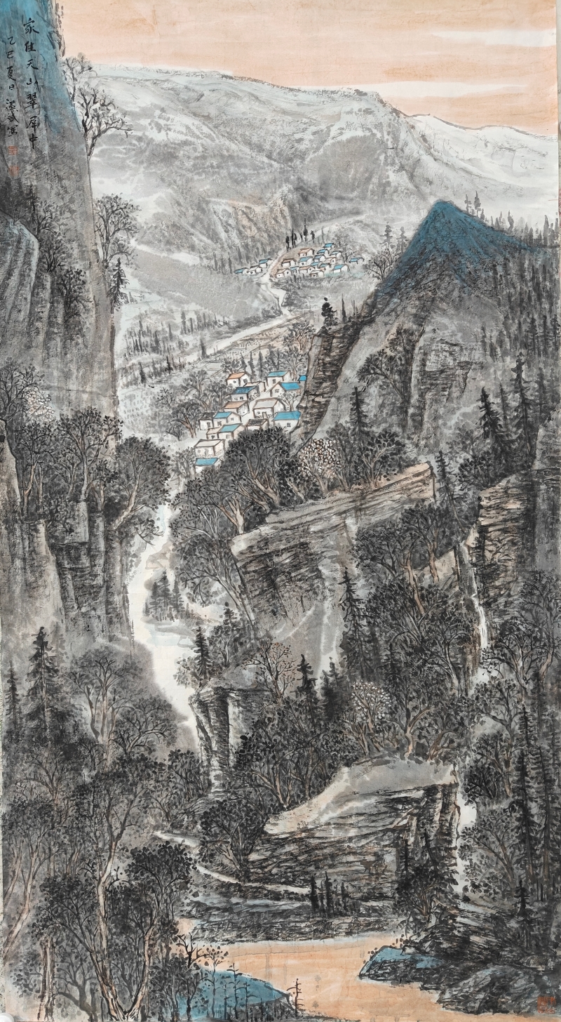 在《生态乡村入天山》《满眼芳草绿一路杏花香》等作品中,温斌展现了生态意识与传统山水精神的交融。他笔下的天山并非遥不可及的圣山,而是与人类生活和谐共存的生态空间。这种处理方式既承接了宋代山水“可居可游”的美学理想,又注入了当代的生态关怀。值得注意的是,温斌并未采用西方风景画的写实手法,而是运用传统山水画的散点透视与意境营造,创造出一种既真实又超越的边疆景观。这种创作方法表明,他并非简单地用国画技法描绘新疆风景,而是在进行一种语言转换——将边疆经验转化为山水画的美学词汇。